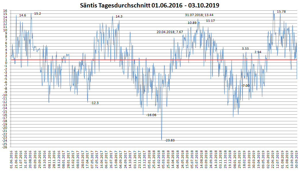 Säntis Tagesmittel vom 01.06.2016 - 03.10.2019