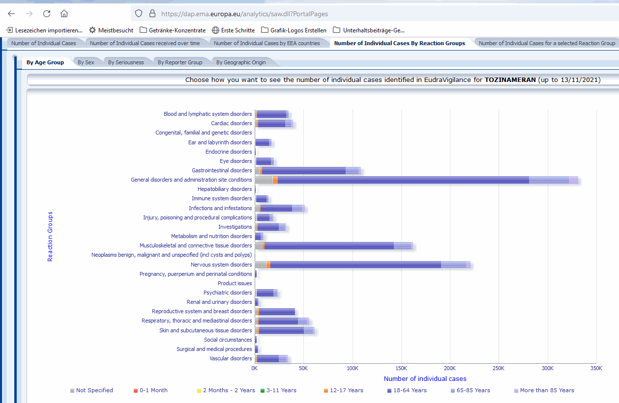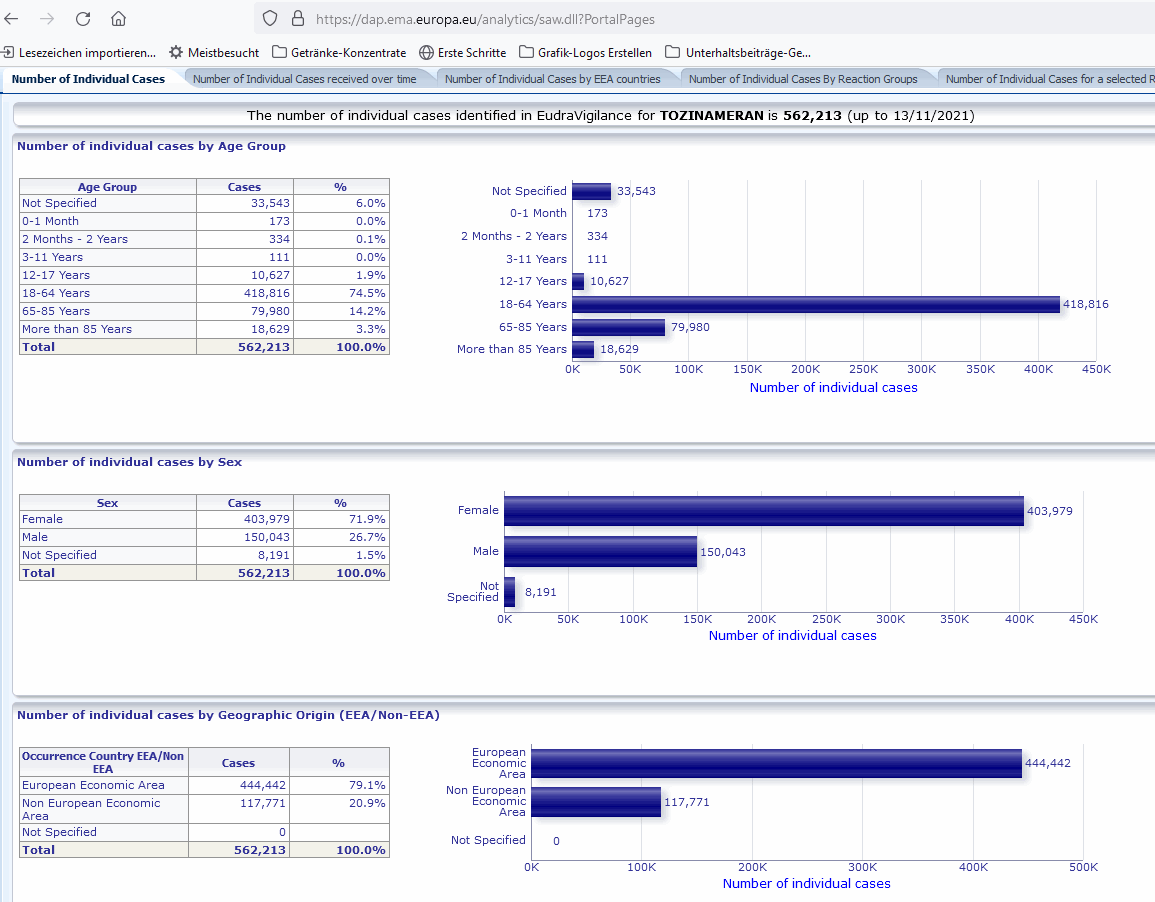 Daten der EudraVigilance und OPENVaers - Stand 13.11.2021