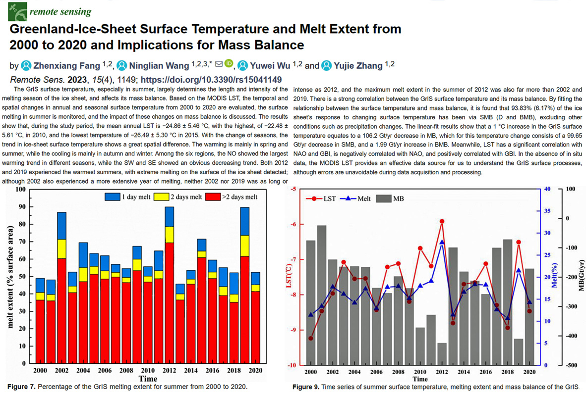 Der Prozentsatz der Eisschmelze und die Oberflächentemperatur des grönländischen Eisschildes sind seit 2002 unverändert (bis leicht rückläufig) geblieben (Fang et al., 2023).