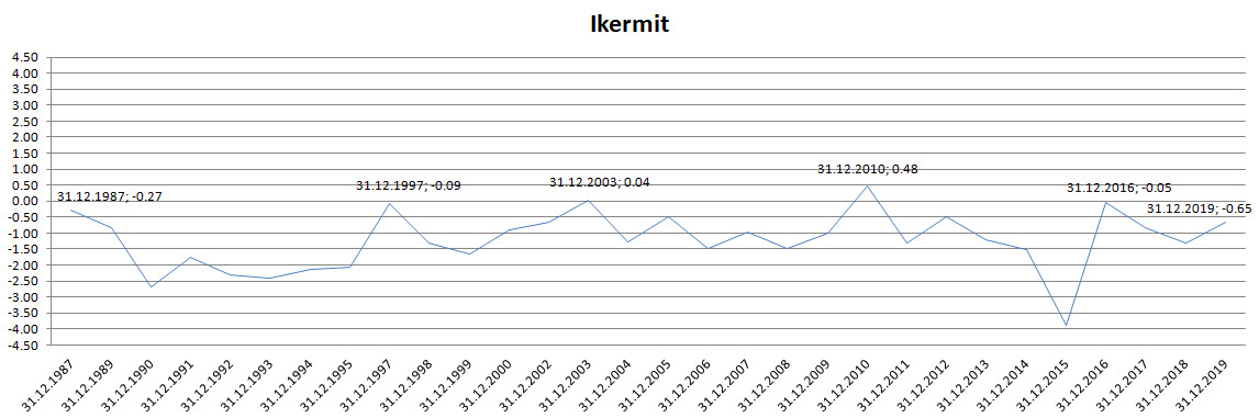 Die Station Ikermit liegt Ca. 400Km nördlicher im Südosten Grönlands. Hier ist bereits wie bei den anderen Stationen, eine deutliche Abkühlung nachweisbar.